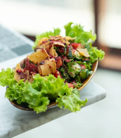 Tomato, Cucumber, onions, red radish, fresh mint, parsley, olive oil Lemon Vinaigrette, crispy Pita bread, Sumac grenadine syrup