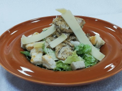 Mixed Greens with marinated Chicken Breast, Avocado, Cherry Tomato Caesar dressing and Parmesan Cheese