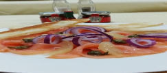 Thinly sliced smoked Salmon with Capers, Sour Cream and Crispy brown Toast