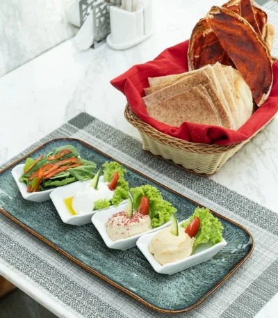 Hummus, Tabbouleh, Mutable, Rucola and Vine-leaves For (Four Pax)