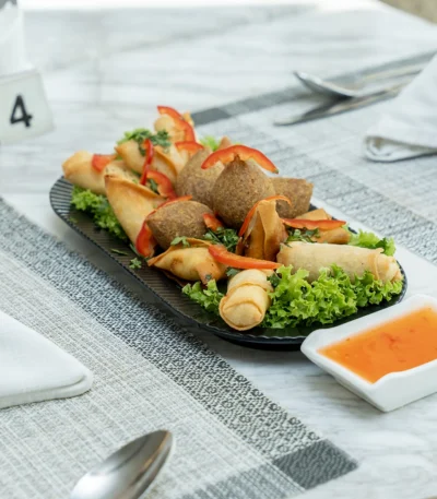 Kabbah, Mix Sambousek, Spring roll, Served with Arabic bread For (Four Pax) 12 pcs