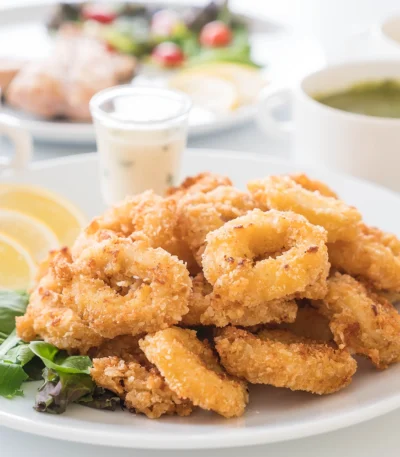 (Your Choice of Grilled or Fried Mix Sea Food, medallion of king Fish Fillet / Shrimp / Calamari) Served with
