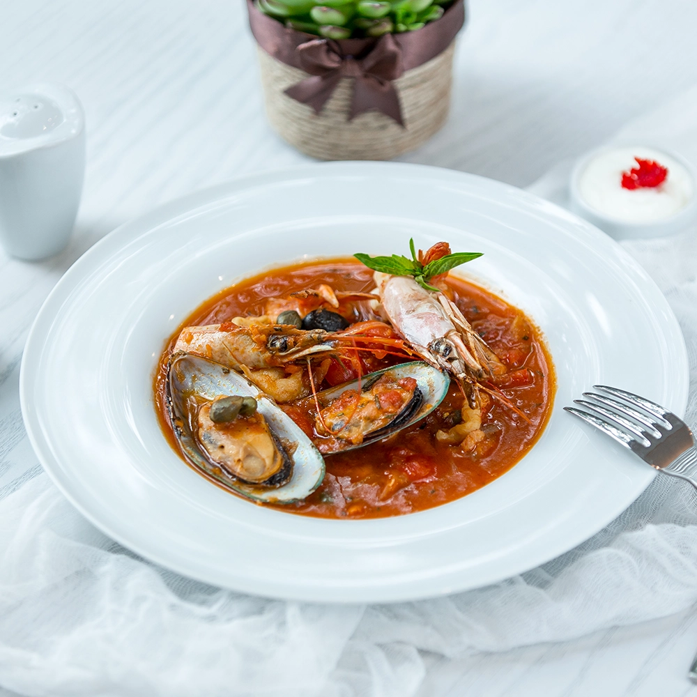 Our Fresh catch sea food with Grab Served with Lemon wedge & garlic Bread