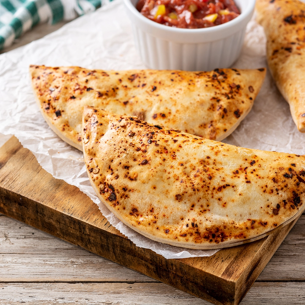 Tomato sauce, mozzarella cheese, ricotta cheese, diced pepperoni, fresh mushrooms
