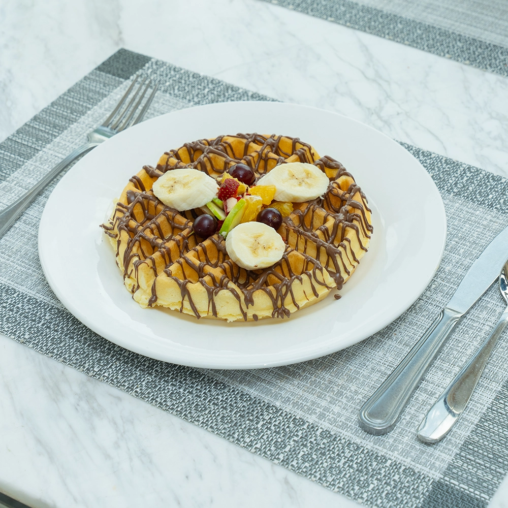 Banana, Nutella, whipped cream, cinnamon, hazelnut, chocolate sauce