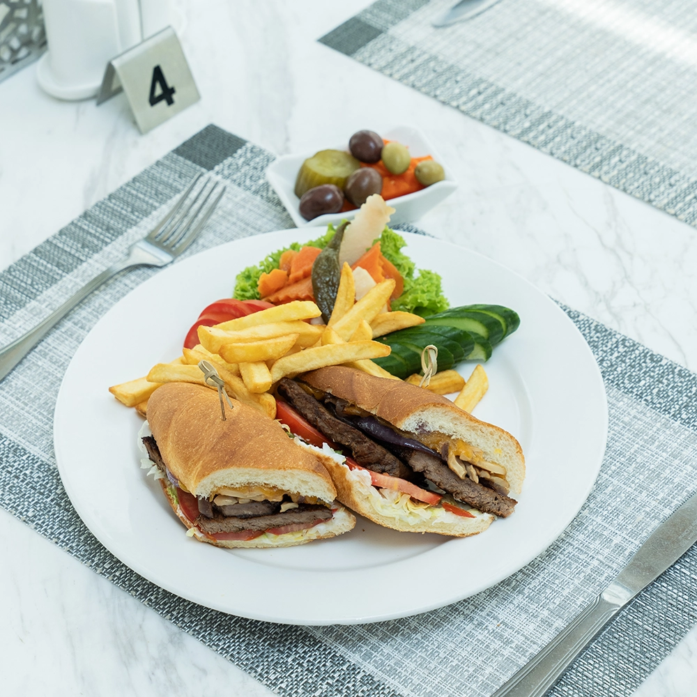 Beef Fillet, sauteed Onions, bell peppers, Mushrooms and chedder cheese