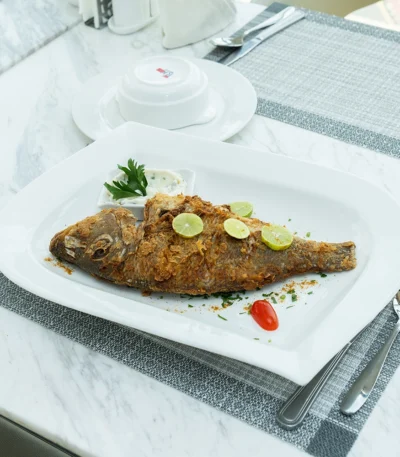 Choose you way of cooking roasted or fried fresh whole fish (hamour or shaour) Servid with your choise of rice